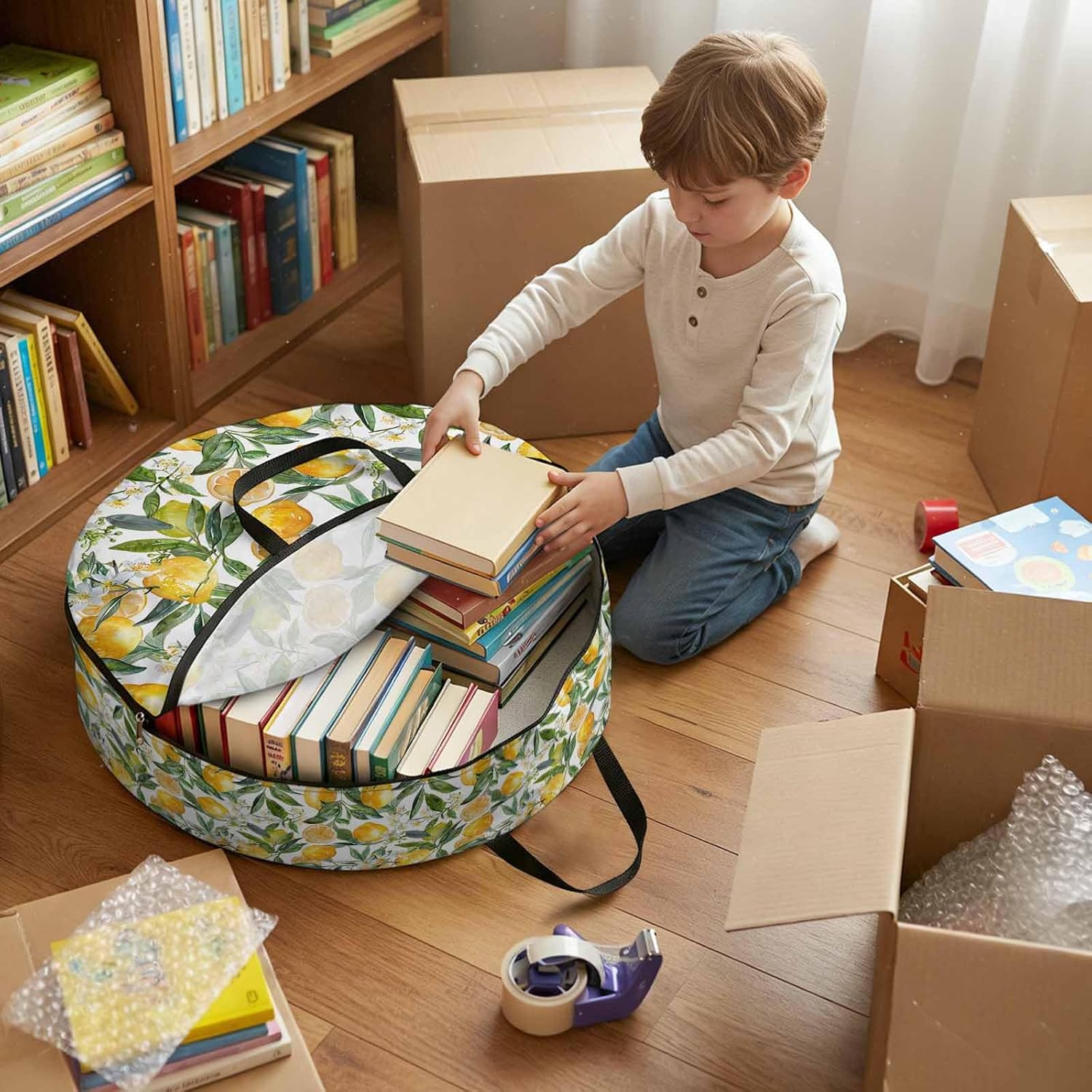 Reclaim Your Closet Space with the Round Storage Solution! Material: polyester Diameters: 24 inch, 30 inch, 36 inch Depth: 7 inches Package Includes: Round Storage Bag One Bag, Endless Possibilities: Whether you are swapping out your summer wardrobe, moving into a new dorm, or packing away holiday decorations, this bag has you covered. The circular design is uniquely suited for: Bedding: Comforters, quilts, sheet sets, and oversized pillows. Clothing: Winter coats, sweaters, and bulky ski gear. Home Decor: Holiday wreaths, garlands, and floral arrangements. Outdoor Gear: Camping blankets, sleeping bags, and beach towels. Dual Zippers: The high quality double zipper design allows the closet organizer to open wide from both sides, making it effortless to load and unload even the bulkiest comforters or wreaths. Reinforced Handles: Sturdy, reinforced handles are securely stitched to provide extra strength and a comfortable grip when carrying heavy loads or pulling the bag from under a bed. Clear Label Pocket: A transparent built-in label holder allows you to quickly identify the contents of each bag without ever having to unzip it, keeping your storage perfectly organized.