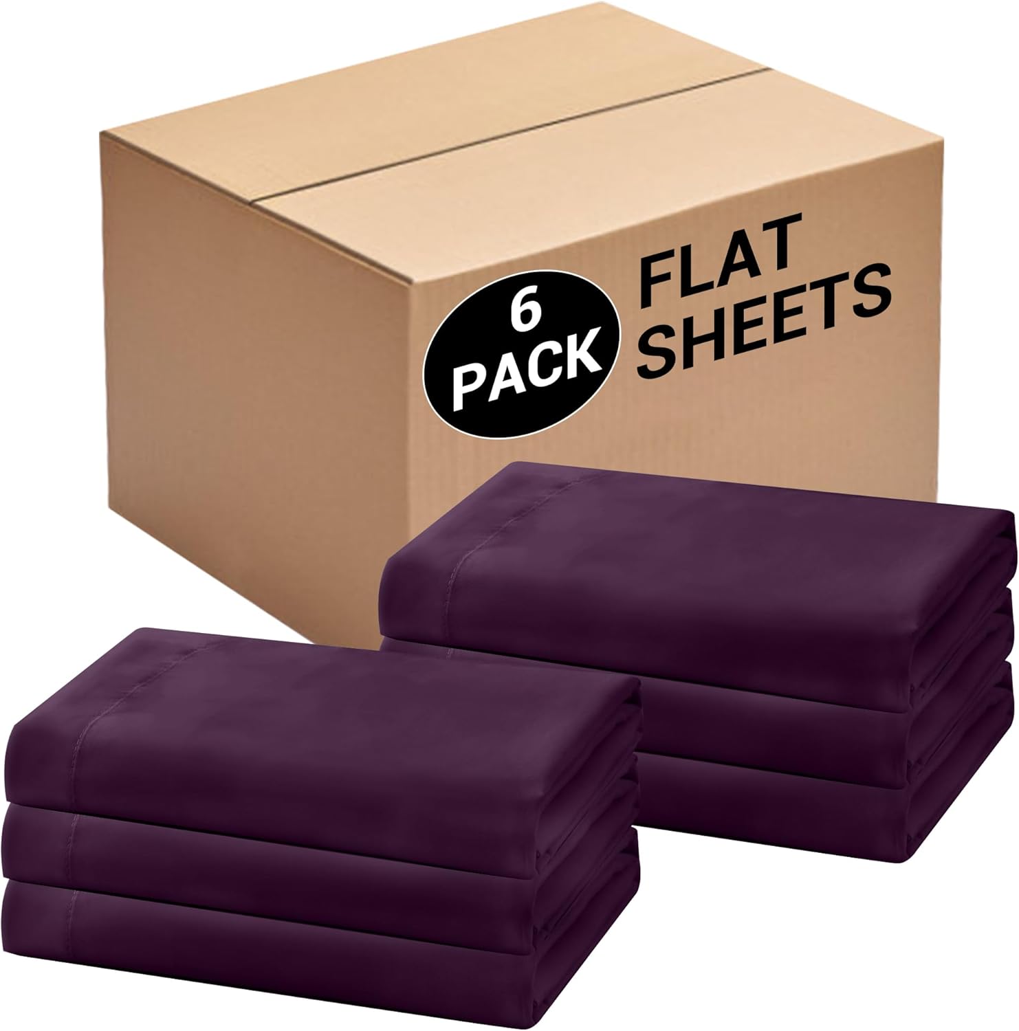 Bulk King Flat Sheets Only, 6 Pack Quick Sort Top Bed Sheet, Color-Coded Label Threads, Wrinkle-Free Shrinkage Durable Microfiber Hotel Motel Airb&bs Essentials for Hosts (105"x102",Black)