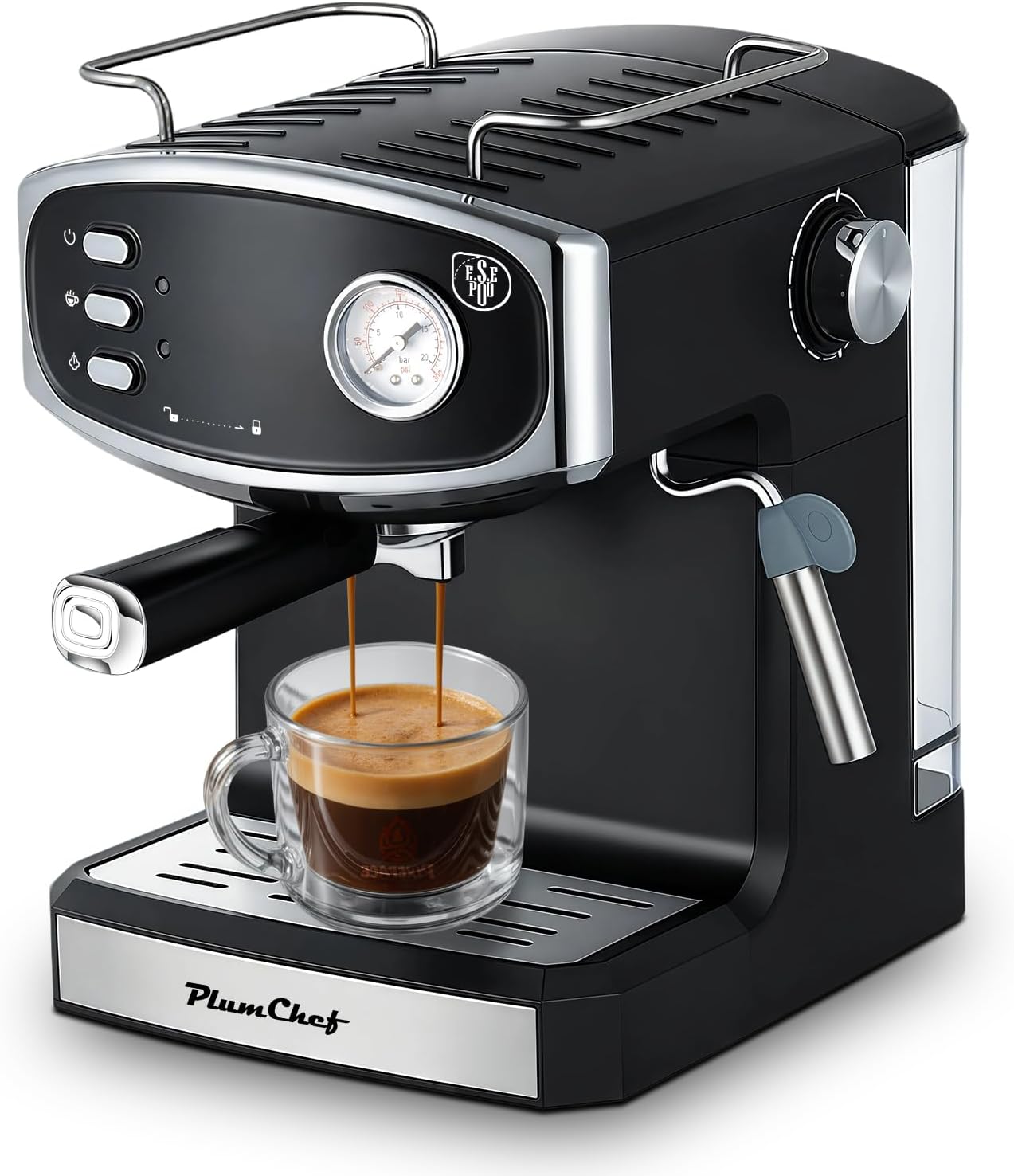 Plum chef Espresso Machine Household Coffee Espresso Maker,Low Noise and Fast Coffee Machine for Cappuccino Latte,with Milk Frother Steam Wand Pressure Gauge 54oz Water Tank
