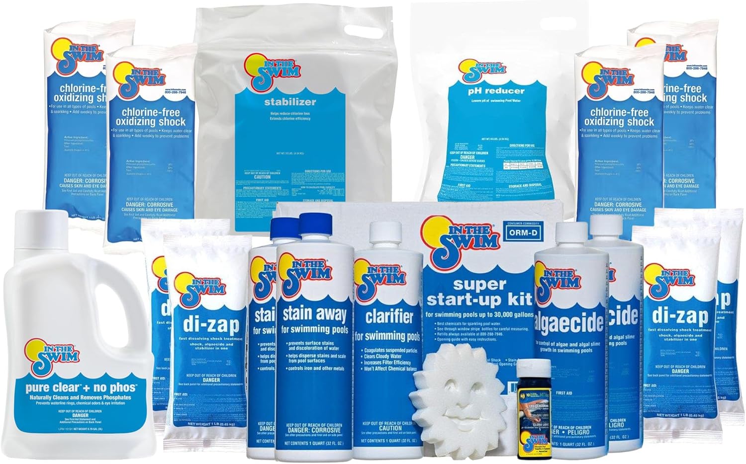 Saltwater pools need more stabilizer than traditional chlorine pools. Without enough stabilizer, sunlight can quickly destroy chlorine before the salt system can maintain proper levels. The In The Swim Saltwater Pool Opening Kit Bundle includes the In The Swim Start-Up Kit plus additional chlorine stabilizer (CYA) and pH reducer to support saltwater pool chemistry. Stabilizer helps protect chlorine from sunlight, while pH reducer helps balance the natural pH rise caused by salt systems. This simple bundle helps salt pool owners start the season with balanced water and reliable sanitizer performance.